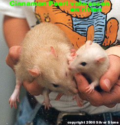 Witte ondervacht en licht oranje bovenvacht met lichtgrijze haarpuntjes (pareling), lichtgrijze buikkleur en donkerbruin tot zwarte ogen.