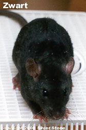 Egaal zwart, buikkleur ook zwart, oogkleur zeer donkerbruin.