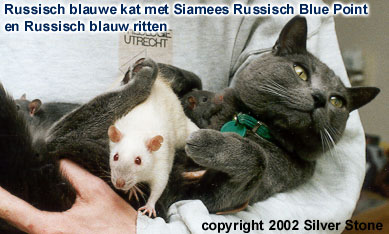 Een siamees Russisch Blue Point heeft Russisch Blauwe (donker grijs-blauwe) points en de oogkleur is rood.
